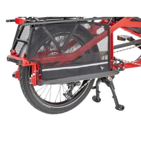 Le Sidekick Wheel Guard L est une paire de protection en filet qui protègent les pieds des jeunes passagers à l'arrière du vélo longtail Tern Quick Haul Long.